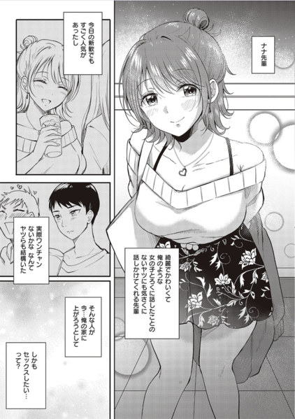 【エロ漫画筆おろし】後輩の巨乳女子大生のギャルに押し倒され童貞ちんぽ筆おろされてしまった件について!